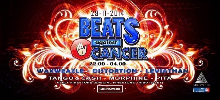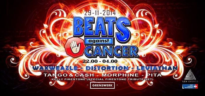 Op zaterdag 29 november is het weer tijd door het door LCV Events georganiseerde Beats Against Cancer met Leviathan, Waxweazle, Distortion, Tango & Cash, Pita, Morphine & Kelly Firestone met een ‘Special Kelly Firestone Tribute Set’.