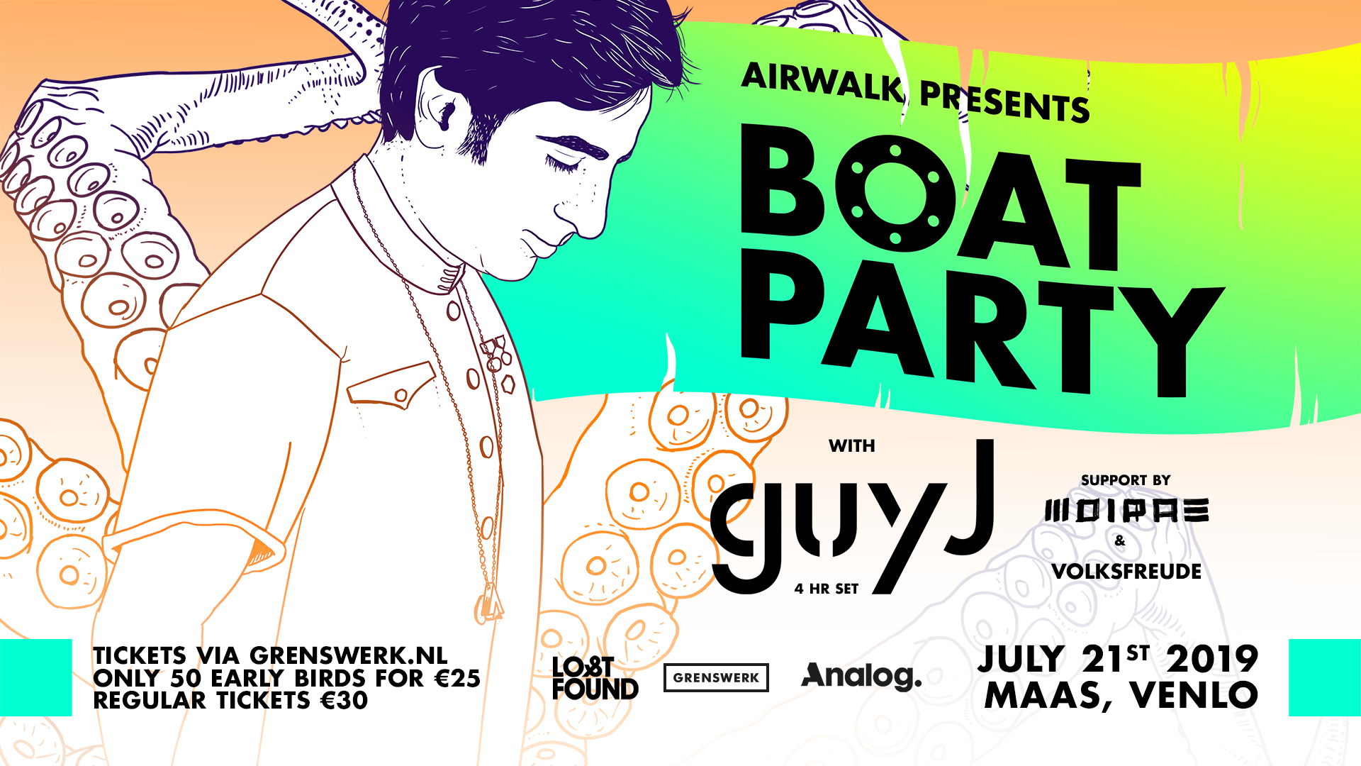 The first Airwalk – Boat Party, to happen on June 15th, was sold out within 3 weeks! This made us decide to do another one and to invite someone who is very familiar with doing boat parties… GUY J!