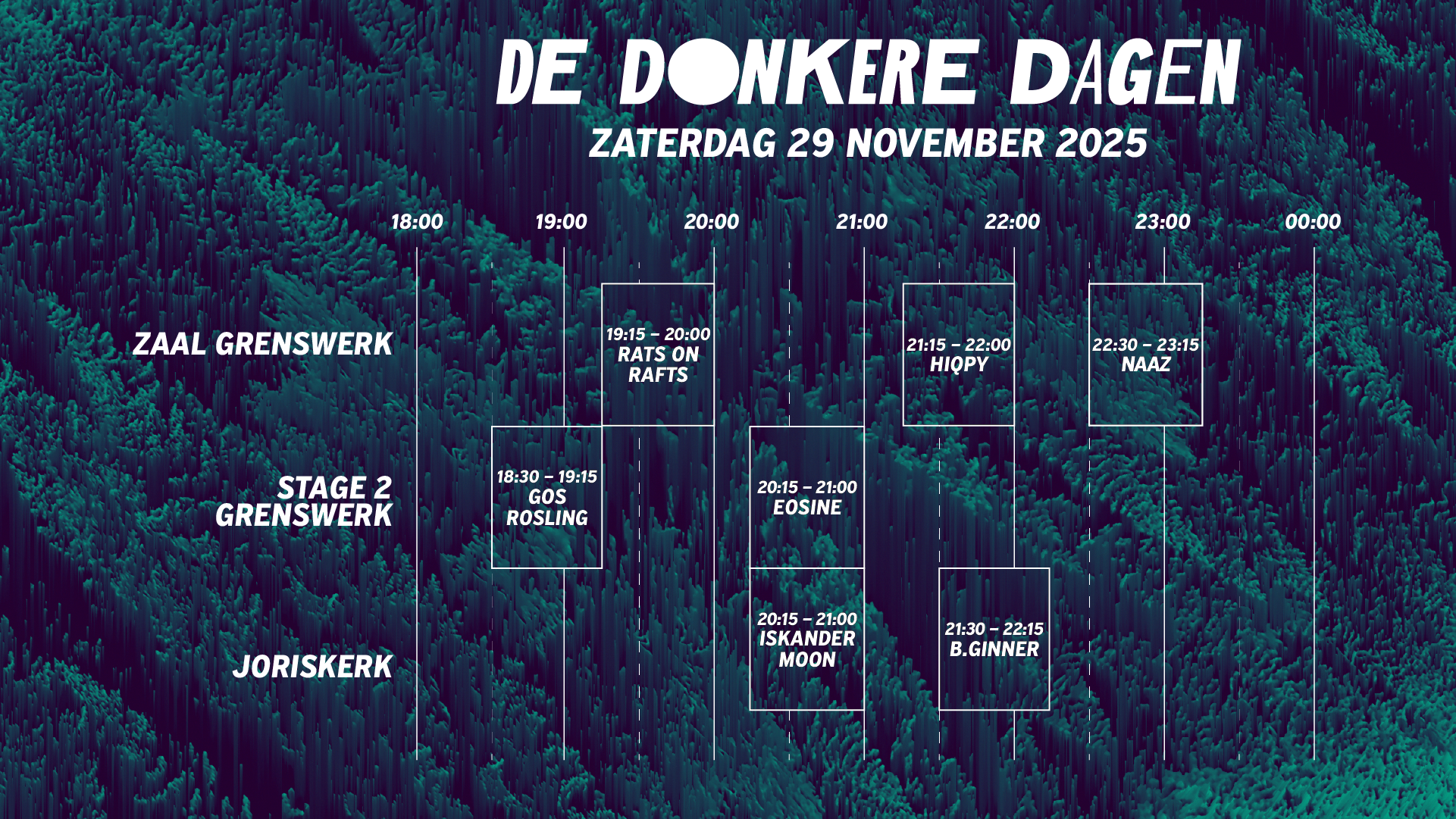 Wanneer de herfstbladeren vallen en de kortere dagen hun intreden maken, omarmen we de avond met een line-up van artiesten waar je u tegen zegt. Muziek is immers het beste remedie tegen een herfstdip. Grenswerk en Maaspoort laten tijdens deze Donkere Dagen het licht schijnen op de tofste acts.