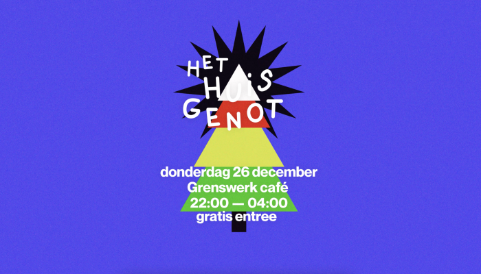 Op Tweede Kerstdag worden als vanouds de kerst kilo’s eraf gedanst in het Grenswerk Café met Huisgenot! Neem je vrienden mee en vier de kerst door tot in de late uurtjes met onze DJ crew. Een betere manier om de feestdagen af te sluiten is er niet!