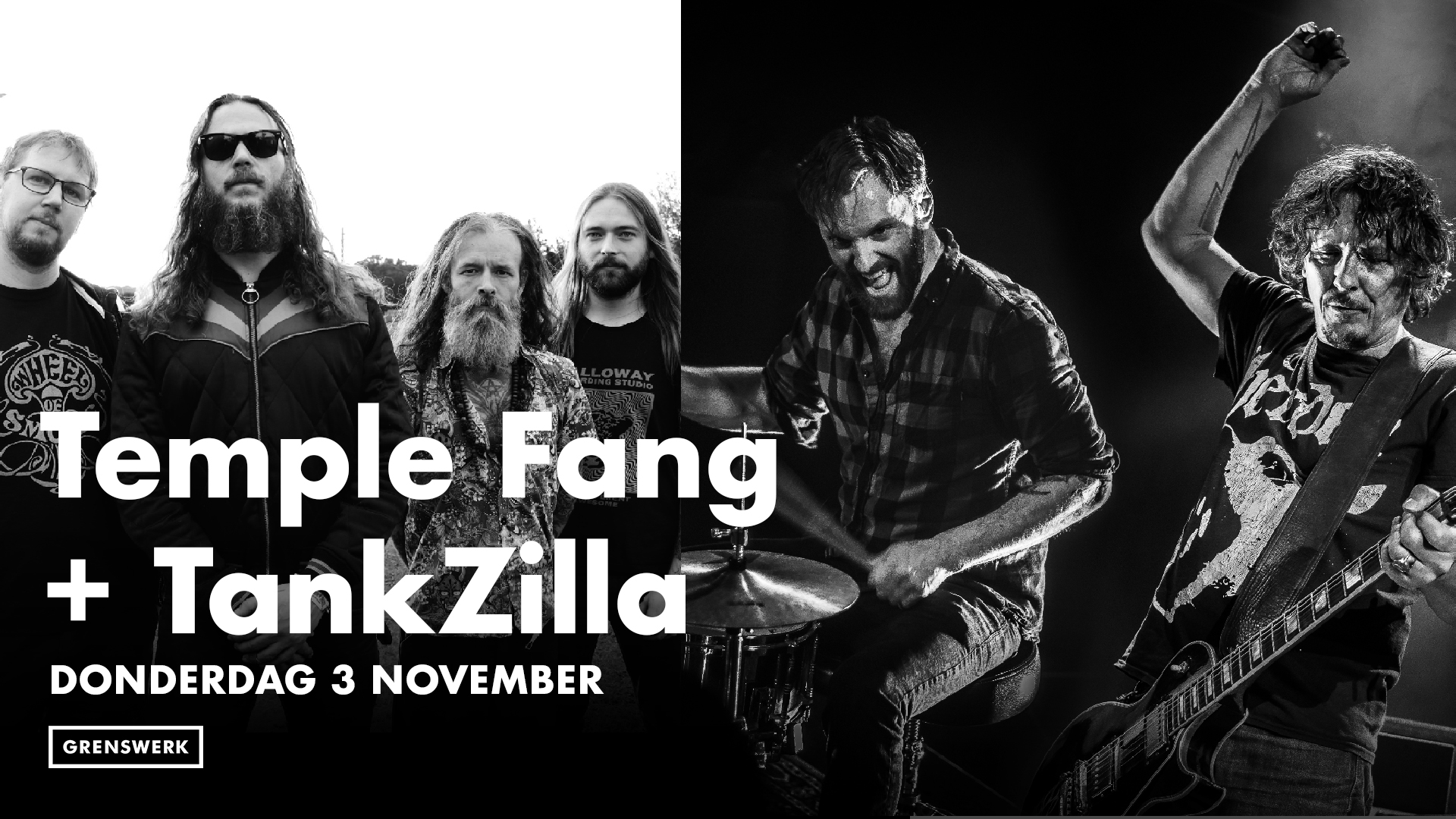 We maken hier een hele toffe double bill van en voegen TankZilla toe! TankZilla is het nieuwe muzikale project van zanger-riffmeister Peter van Elderen (Peter Pan Speedrock; Repomen) en drummer-canis lupus Marcin Hurkmans (Wolfskop). Subtiel als een brandende met prikkeldraad omwikkelde honkbalknuppel; strak als Russ Meyer’s pin-ups in cupmaat A. Deze slechts tweekoppige beastmachine is slow & furious en hypnotiseert zijn toehoorders met groovende desert soul.