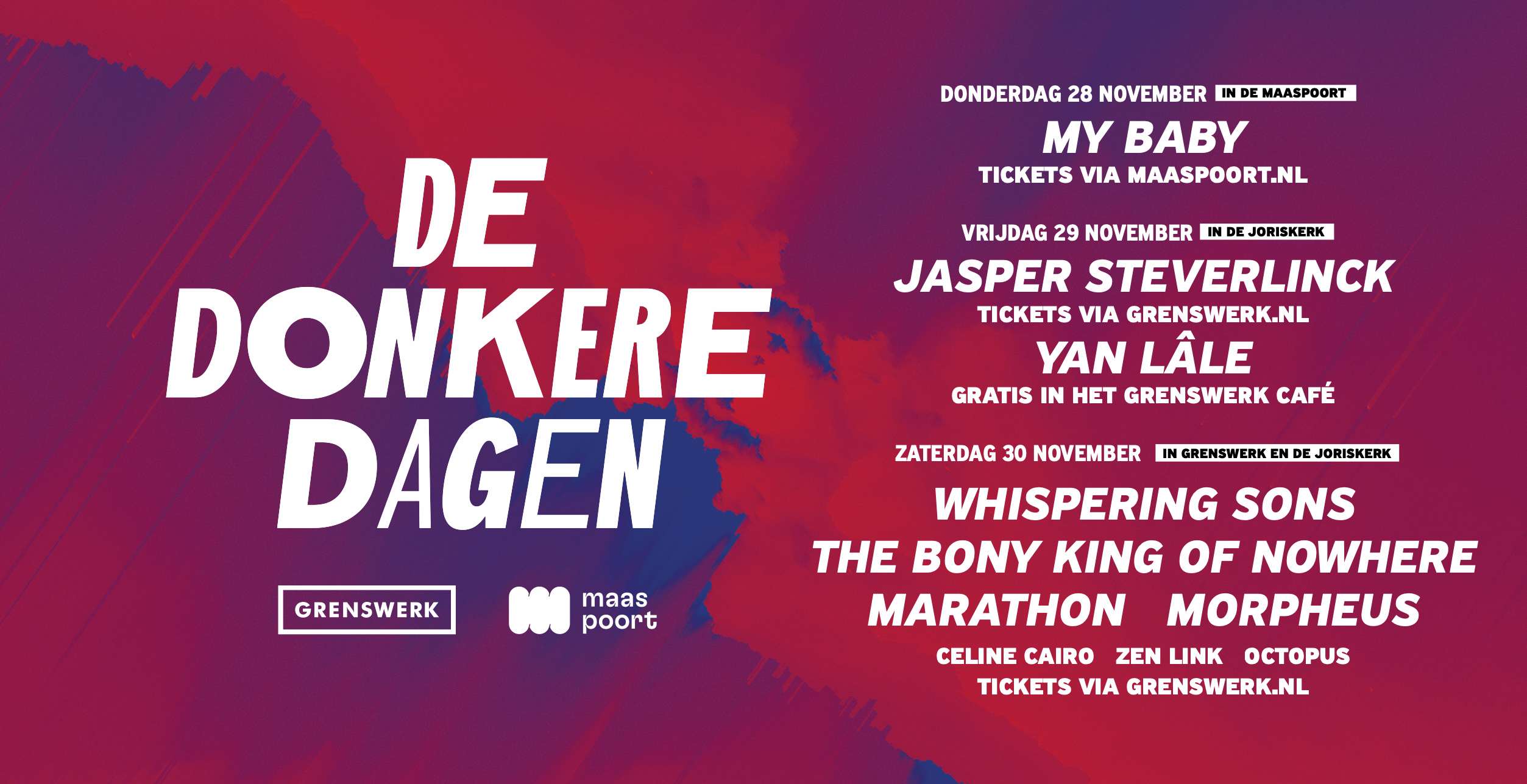 Dit indoor festival biedt een gevarieerd programma aan in Grenswerk en de Maaspoort. Van indie-folk tot hiphop, postpunk en dance. Voor ieder wat wils! En als de nacht valt, gaat het feest gewoon door met een afterparty die tot in de vroege uurtjes doorgaat. Tijdens deze Donkere Dagen laten deze twee podia het licht schijnen in Venlo.