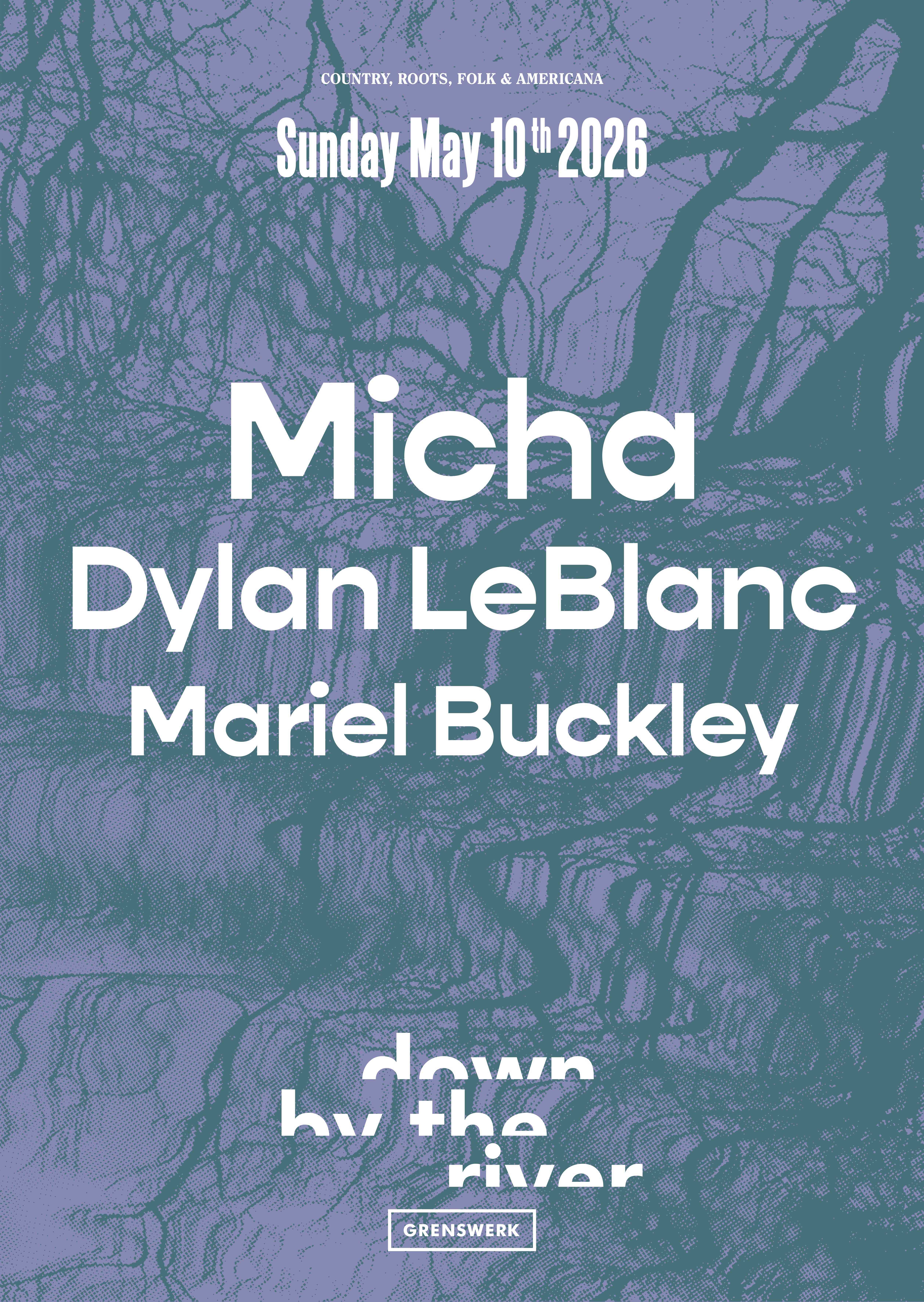 Americana-, Roots- en Alt.Country-event Down By The River in Poppodium Grenswerk onthult vandaag de namen voor de tiende editie op zondag 10 mei 2026. De line-up bestaat dit jaar uit drie uitzonderlijke artiesten die elk op hun eigen manier de grenzen van het genre verleggen: de Nederlandse singer-songwriter Micha, de Amerikaanse muzikant Dylan LeBlanc en de Canadese alt-country artiest Mariel Buckley. De kaartverkoop is direct gestart.
